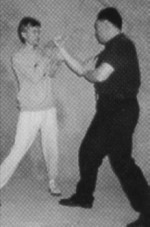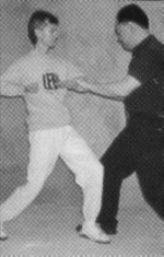 I had awakened from my afternoon nap. Grandfather was snoozing away in his peculiar method of inhaling through his nose and exhaling through his mouth, a little puff at the end of each exhalation. There was no television, no radio, so I decided to entertain myself with a plastic coffee can lid that I threw about the kitchen like a Frisbee. I threw it at the wall and watched it bounce off. Then I threw it at angles and watched it ricochet! I thought, in my 7-year old mind, "What would it be like if I had some real room?" I decided to go into the living room where grandfather was still napping away. "It's pretty quiet, so I guess I can throw it and he'll never notice," I thought. I threw it and retrieved it once. No disturbance! "Wow! Look at it fly! Let's try that again!" The next thing I knew, Grandfather was awakened, furious! "Lao san (Number 3), why can't you be quiet when I rest?!" Uh, oh! I was in big trouble. I had awakened him from his nap! "You're a mischievous boy and now I'm going to punish you!" He grabbed me by my collar and told me to squat in the corner in a peculiar stance for a half hour. I had no choice. Grandfather had decided and so there I remained, legs quivering, hands at my sides, panting and straining and sitting in the dreaded horse stance for the next 30 minutes, which seemed like an eternity. Grandfather grinned, "That'll teach you to wake me up!" Here I am now, some twenty-nine years later writing this article to tell you the benefit of that torture, er, I mean training. Whether you practice Hung Gar, Wing Chun, Tai Ji Quan, Northern Shaolin, Xing Yi or Ba Gua - there's no getting around it! Whether you call it Zhan Zhuang (Pile Exercise), Jut Ma (Sitting on a Horse), standing meditation, or simply, stance training, it is the same. It's a boring, strenuous exercise that even the advanced students want to avoid. But would you believe strenuous training is one of the quickest methods of developing internal power? For the martial artist, one of the most important quests in learning and mastery of your art is the study of power ("jing" in Mandarin, "ging" in Cantonese, and often described as "internal power" in English). The most important thing in the quest for internal power is learning body connection for issuing that power. In my studies, body connection is the first way to developing power and sadly, too many practitioners are still searching for power after 20 years or so of practice. A student of mine, Kim Eng, once remarked that when he studied a so-called "internal art", he was waiting to get the "qi power" after 20 years of practice. I laughed. I then gave him an understanding of body connection and One of the best ways to get power: stance training. This article will focus on Wing Chun kuen as it is the principle system I teach, and a few simple tests for the practice and development of stance and power. The way I teach Wing Chun, the body structure and connection comes first. Later the forms solidify that training with the tools becoming involved. Partner exercises are introduced to be able to get used to utilizing this body structure in combat, and weapons skills are taught later to be able to project power with the body through a weapon. Personally, having seen many magazine articles and read many books, I first look at the demonstrator's body to see if the can express power through their torso. Just a look at their pelvis and stance, and I can get a good idea if the martial artist is skilled or not. Quite often I am amused by the lack of body usage in their demonstrations of technique, even by advanced practitioners. Power depends upon both internal and external factors. Oral tradition states, "Power originates from the heels, travels up the ankle and knee joints, is in conjunction with the waist, issues forth from the body and rib cage, travels down the shoulders, to the elbow, to the wrist and manifests from the hands". A proper positioning of the body, muscle relaxation and contraction, breathing and timing are also factors involved in this. Basic Alignment Proper body structure comes from aligning the 3 dan tian and is crucial to the development of this power. You must align the Yin Tang (an acupuncture point between the two eyebrows), Tan Zhong (Ren 17, a point located on the midline of the body, level with the 4th intercostal space) and Qi Hai (ren 6, also known as dan tian, a point 1.5 cun below the navel) points in one line. (See illustrations). With this basic alignment in place, you can easily attain the "Qi feeling" in the body - that would be first what is called "Xiao Zhou Tian" (Small Microcosmic Orbit), then later advance to "Da Zhou Tian" (Big Microcosmic Orbit) which extends awareness of Qi flow throughout the body. As the focus of this article is more on the more physical aspects and benefits of body structure and stance training, I will discuss this more in detail in a future article or advise you to look for other qualified teachers in standing meditation. Test # 1 With this basic posture aligned, you should try a simple test of alignment with the Yee Ji Kim Yeung Ma (Yee Character pinching goat horse), the basic stance practiced in Wing Chun. First, you should try to stand when a force or pressure is exerted upon you. For example, let's say a person puts their palm on your chest and presses with continuous force. The pressure should not send you flying back, but should root you to the ground. You cannot develop this power if you are leaning backwards like the Leaning Tower of Pisa, or "hunchbacked" like Quasimodo of Notre Dame. You need to relax and sink and maintain the proper alignment in doing these tests. You equalize the pressure exerted by adjustmenting your balance and pushing forward with the pelvis. The buttocks and the quadriceps are brought into play and also help with this equalization. You should not be as limp as a noodle when relaxed, nor as rigid as a board. You have to have a Yin & Yang, a dynamic interplay of t