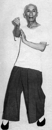 At rare times, the grandmaster might touch hands, with one of his favorite students in chi sao practice. But these occasions would only last for a few seconds at a time. Yip Man feared that by doing chi sao with a junior, his own technique would deteriorate. He would have to slow down for him, to create openings for him, and thus would develop bad habits. Yip was always a gentleman in dealing with his students. He had a soft-spoken style which taught more by example and suggestion than by the spoken word. He urged his students not to bully people, or to act in a rude or arrogant manner. And he tried to keep them from fighting in the street gangs of Hong Kong, though he did encourage organized competition. In the book Bruce Lee: The Man Only I Knew (Warner Books, 1975), Linda Lee quotes from an essay written by her husband for freshman English in 1961. The essay clearly illustrates the subtle tactics Yip Man would use to influence his students: "After four years of hard training in the art of gung-fu, I began to understand and felt the principle of gentleness-the art of neutralizing the effect of the opponent's effort and minimizing expenditure of one's energy. All this must be done in calmness and without striving. It sounded simple, but in actual application it was difficult. The moment I engaged in combat with an opponent, my mind was completely perturbed and unstabled. Especially after a series of exchanging blows and kicks, all my theory of gentleness was gone. My only one thought left was somehow or another I must beat him and win. "My Instructor Professor Yip Man, head of the wing chun school, would come up to me and say, 'Loong, relax and calm your mind. Forget about yourself and follow your opponent's movement. Let your mind, the basic reality, do the counter-movement without any interfering deliberation. Above all, learn the art of detachment.' "That was it! I must relax. However, right here I had already done something contradictory, against my will. That was when I said I must relax, the demand for effort in 'must' was already inconsistent with the effortlessness in 'relax.' When my acute self-consciousness grew to what the psychologists call the 'double-blind' type, my instructor would again approach me and say, 'Loong, preserve yourself by following the natural bends of things and don't interfere. Remember never to assert yourself against nature: never be in frontal opposition to any problem, but control it by swinging with it. Don't practice this week. Go home and think about it.' "The following week I stayed home. After spending many hours in meditation and practice, I gave up and went sailing alone in a junk. On the sea I thought of all my past training and got mad at myself and punched at the water. Right then at that moment, a thought suddenly struck me. Wasn't this water, the very basic stuff, the essence of gung-fu? Didn't the common water illustrate to me the principle of gung-fu? I struck it just now, but it did not suffer hurt. Again I stabbed it with all my might, yet it was not wounded. I then tried to grasp a handful of it but it was impossible. This water, the softest substance in the world, could fit itself into any container. Although it seemed weak, it could penetrate the hardest substance in the world. That was it! I wanted to be like the nature of water."