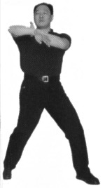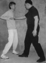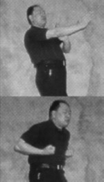 I had awakened from my afternoon nap. Grandfather was snoozing away in his peculiar method of inhaling through his nose and exhaling through his mouth, a little puff at the end of each exhalation. There was no television, no radio, so I decided to entertain myself with a plastic coffee can lid that I threw about the kitchen like a Frisbee. I threw it at the wall and watched it bounce off. Then I threw it at angles and watched it ricochet! I thought, in my 7-year old mind, "What would it be like if I had some real room?" I decided to go into the living room where grandfather was still napping away. "It's pretty quiet, so I guess I can throw it and he'll never notice," I thought. I threw it and retrieved it once. No disturbance! "Wow! Look at it fly! Let's try that again!" The next thing I knew, Grandfather was awakened, furious! "Lao san (Number 3), why can't you be quiet when I rest?!" Uh, oh! I was in big trouble. I had awakened him from his nap! "You're a mischievous boy and now I'm going to punish you!" He grabbed me by my collar and told me to squat in the corner in a peculiar stance for a half hour. I had no choice. Grandfather had decided and so there I remained, legs quivering, hands at my sides, panting and straining and sitting in the dreaded horse stance for the next 30 minutes, which seemed like an eternity. Grandfather grinned, "That'll teach you to wake me up!" Here I am now, some twenty-nine years later writing this article to tell you the benefit of that torture, er, I mean training. Whether you practice Hung Gar, Wing Chun, Tai Ji Quan, Northern Shaolin, Xing Yi or Ba Gua - there's no getting around it! Whether you call it Zhan Zhuang (Pile Exercise), Jut Ma (Sitting on a Horse), standing meditation, or simply, stance training, it is the same. It's a boring, strenuous exercise that even the advanced students want to avoid. But would you believe strenuous training is one of the quickest methods of developing internal power? For the martial artist, one of the most important quests in learning and mastery of your art is the study of power ("jing" in Mandarin, "ging" in Cantonese, and often described as "internal power" in English). The most important thing in the quest for internal power is learning body connection for issuing that power. In my studies, body connection is the first way to developing power and sadly, too many practitioners are still searching for power after 20 years or so of practice. A student of mine, Kim Eng, once remarked that when he studied a so-called "internal art", he was waiting to get the "qi power" after 20 years of practice. I laughed. I then gave him an understanding of body connection and One of the best ways to get power: stance training. This article will focus on Wing Chun kuen as it is the principle system I teach, and a few simple tests for the practice and development of stance and power. The way I teach Wing Chun, the body structure and connection comes first. Later the forms solidify that training with the tools becoming involved. Partner exercises are introduced to be able to get used to utilizing this body structure in combat, and weapons skills are taught later to be able to project power with the body through a weapon. Personally, having seen many magazine articles and read many books, I first look at the demonstrator's body to see if the can express power through their torso. Just a look at their pelvis and stance, and I can get a good idea if the martial artist is skilled or not. Quite often I am amused by the lack of body usage in their demonstrations of technique, even by advanced practitioners. Power depends upon both internal and external factors. Oral tradition states, "Power originates from the heels, travels up the ankle and knee joints, is in conjunction with the waist, issues forth from the body and rib cage, travels down the shoulders, to the elbow, to the wrist and manifests from the hands". A proper positioning of the body, muscle relaxation and contraction, breathing and timing are also factors involved in this. Basic Alignment Proper body structure comes from aligning the 3 dan tian and is crucial to the development of this power. You must align the Yin Tang (an acupuncture point between the two eyebrows), Tan Zhong (Ren 17, a point located on the midline of the body, level with the 4th intercostal space) and Qi Hai (ren 6, also known as dan tian, a point 1.5 cun below the navel) points in one line. (See illustrations). With this basic alignment in place, you can easily attain the "Qi feeling" in the body - that would be first what is called "Xiao Zhou Tian" (Small Microcosmic Orbit), then later advance to "Da Zhou Tian" (Big Microcosmic Orbit) which extends awareness of Qi flow throughout the body. As the focus of this article is more on the more physical aspects and benefits of body structure and stance training, I will discuss this more in detail in a future article or advise you to look for other qualified teachers in standing meditation. Test # 1 With this basic posture aligned, you should try a simple test of alignment with the Yee Ji Kim Yeung Ma (Yee Character pinching goat horse), the basic stance practiced in Wing Chun. First, you should try to stand when a force or pressure is exerted upon you. For example, let's say a person puts their palm on your chest and presses with continuous force. The pressure should not send you flying back, but should root you to the ground. You cannot develop this power if you are leaning backwards like the Leaning Tower of Pisa, or "hunchbacked" like Quasimodo of Notre Dame. You need to relax and sink and maintain the proper alignment in doing these tests. You equalize the pressure exerted by adjustmenting your balance and pushing forward with the pelvis. The buttocks and the quadriceps are brought into play and also help with this equalization. You should not be as limp as a noodle when relaxed, nor as rigid as a board. You have to have a Yin & Yang, a dynamic interplay of t